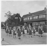 De tekst op de acherzijde van de foto luidt: *Merg Kramer. Toos Ingelse. Els Brandenburg -Envelop 1936-1940-* De foto zelf komt uit 1936.