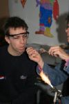 De welpen van de Glimwormpjeskring mochten hun eigen kerstbal blazen, met wat hulp van Marja Bijl