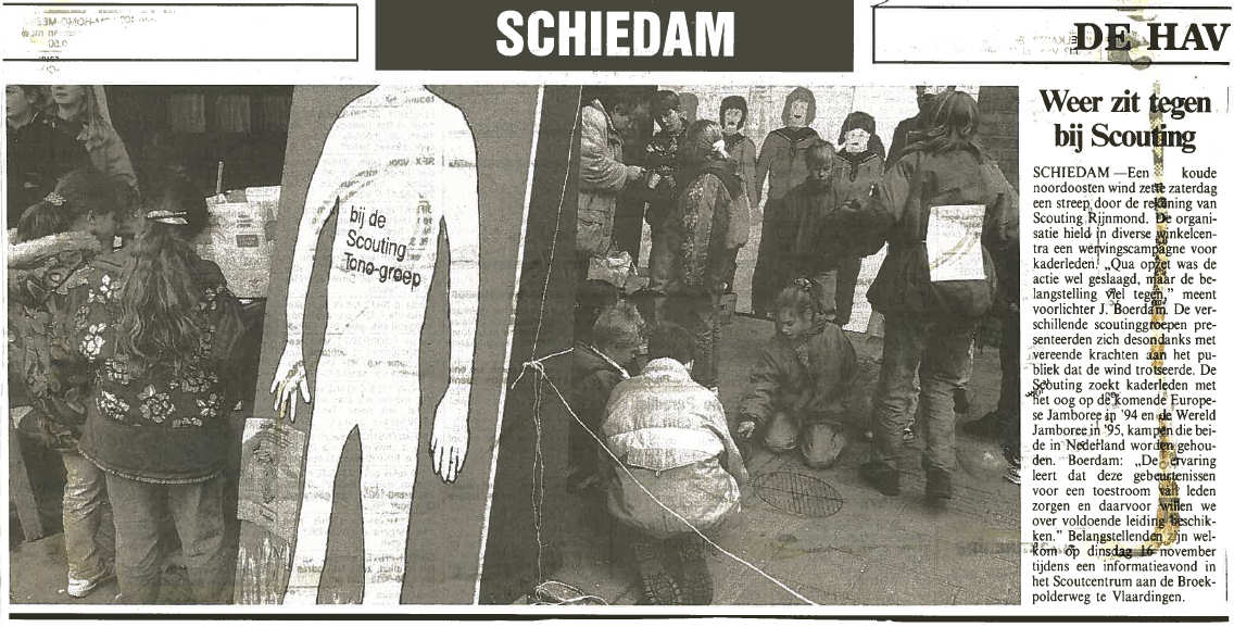Om gereed te zijn voor de komende Europese Jamboree (1994) en de Wereld Jamboree (1995) hield Scouting Distrikt Rijnmond een grote kaderwervingscampagne. Helaas zat het weer wel wat tegen.