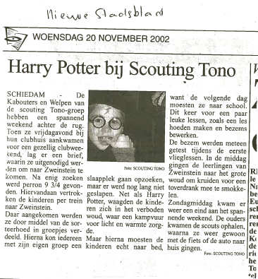 De Kabouters en Welpen van de Glimwormpjeskring hielden een Harry Potter weekend naar aanleiding van de rage rond de Harry Potter films. We kwamen er ook nog mee in de krant.