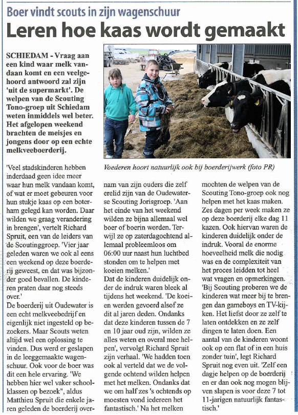 Waar komt melk vandaan? Uit een koe natuurlijk. Op 25, 26 en 27 maart gingen de kabouters en welpen een weekend op bezoek op een echte melkboerderij, het boerderijweekend. Ook de pers was geïntresseerd.