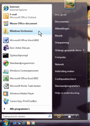Start een verkenner. Kan je deze niet vinden, dan staat deze meestal in het menu onder 'Alle programma's' en dan 'Accessories'.