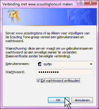 Je gebruikersnaam en wachtwoord krijg je als je vrijwilliger wordt bij de Scouting Tono-groep en zijn hetzelfde als